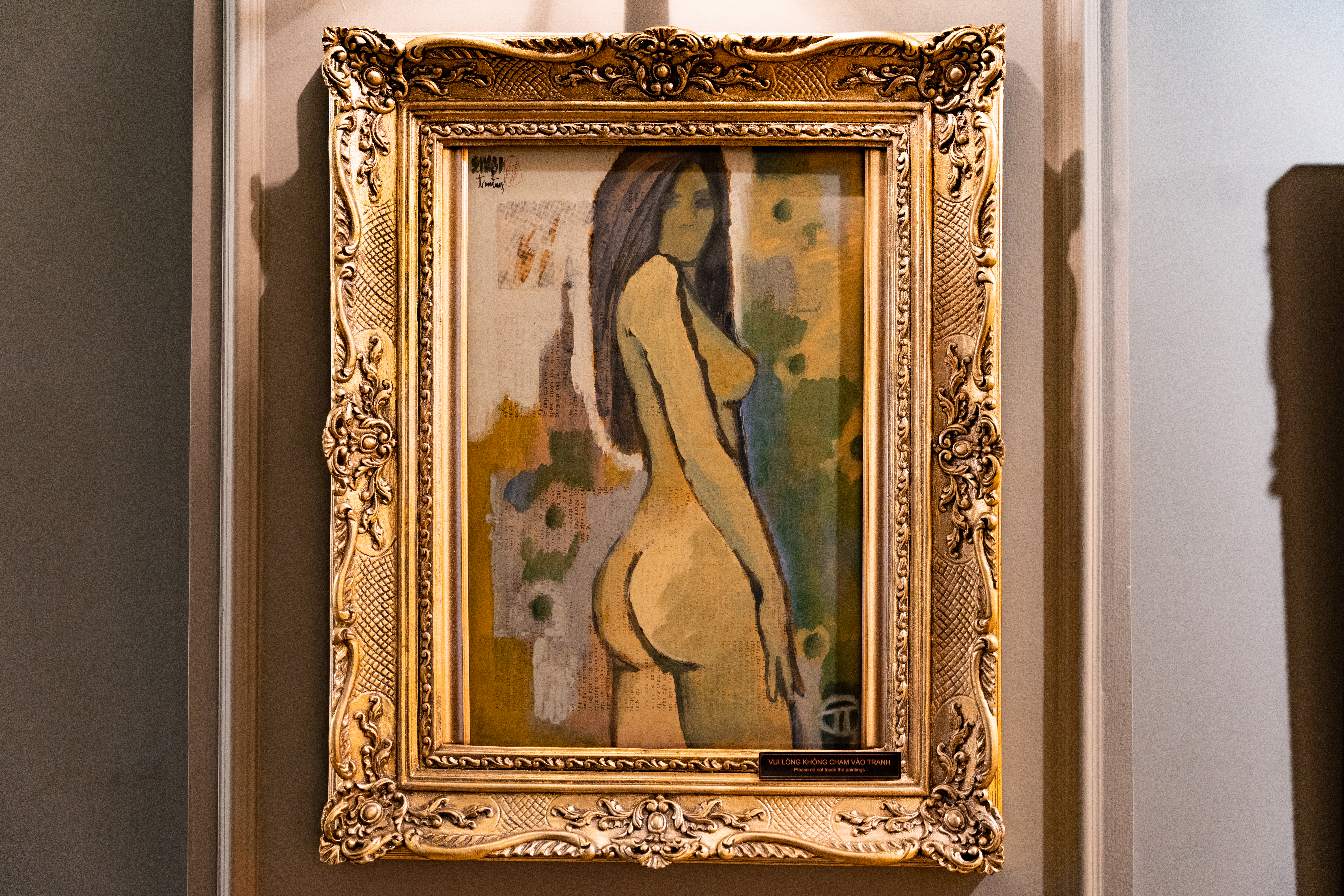 Trong lịch sử nghệ thuật, thếp vàng luôn được xem là một trong những kỹ thuật tinh xảo bậc nhất để tôn vinh tác phẩm. Khi áp dụng lên khung tranh, từng lá vàng mỏng được dát thủ công tạo nên lớp ánh sáng lấp lánh, phản chiếu theo nhiều góc độ khác nhau. Thếp vàng không chỉ là cách tăng giá trị thẩm mỹ cho bức tranh, mà còn giúp khung đạt được chiều sâu thị giác, đem lại sự sang trọng và bền vững vượt thời gian. Những chi tiết thếp vàng thủ công trở thành minh chứng cho tay nghề và sự tinh tế của người nghệ nhân.