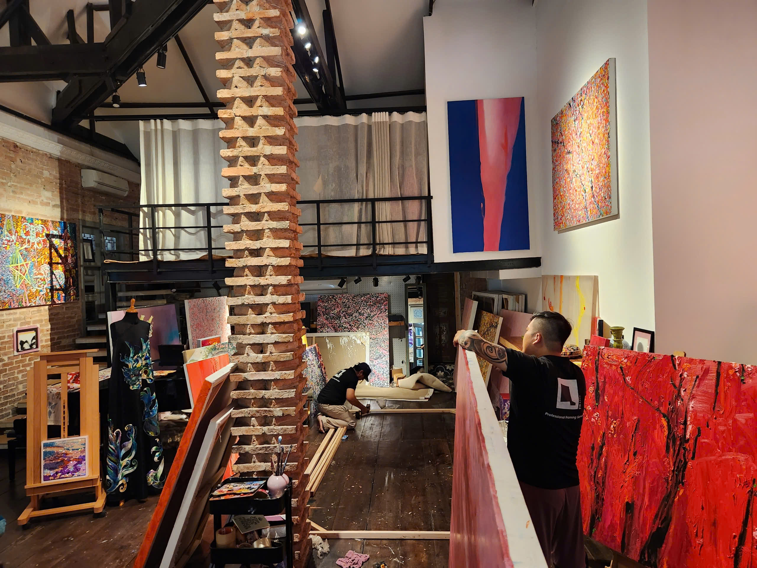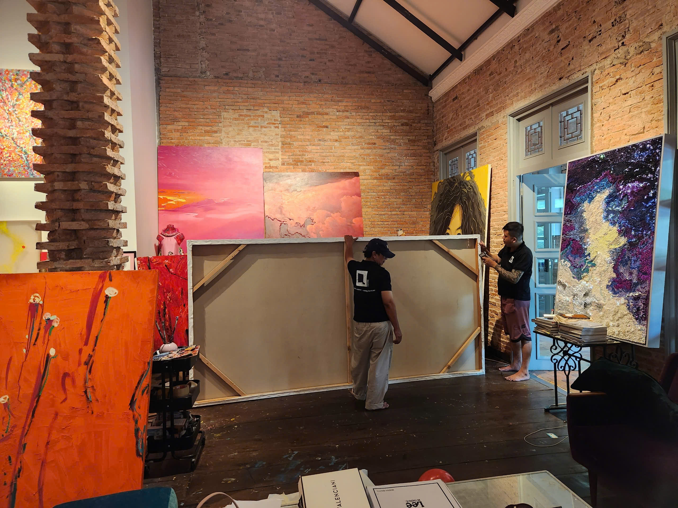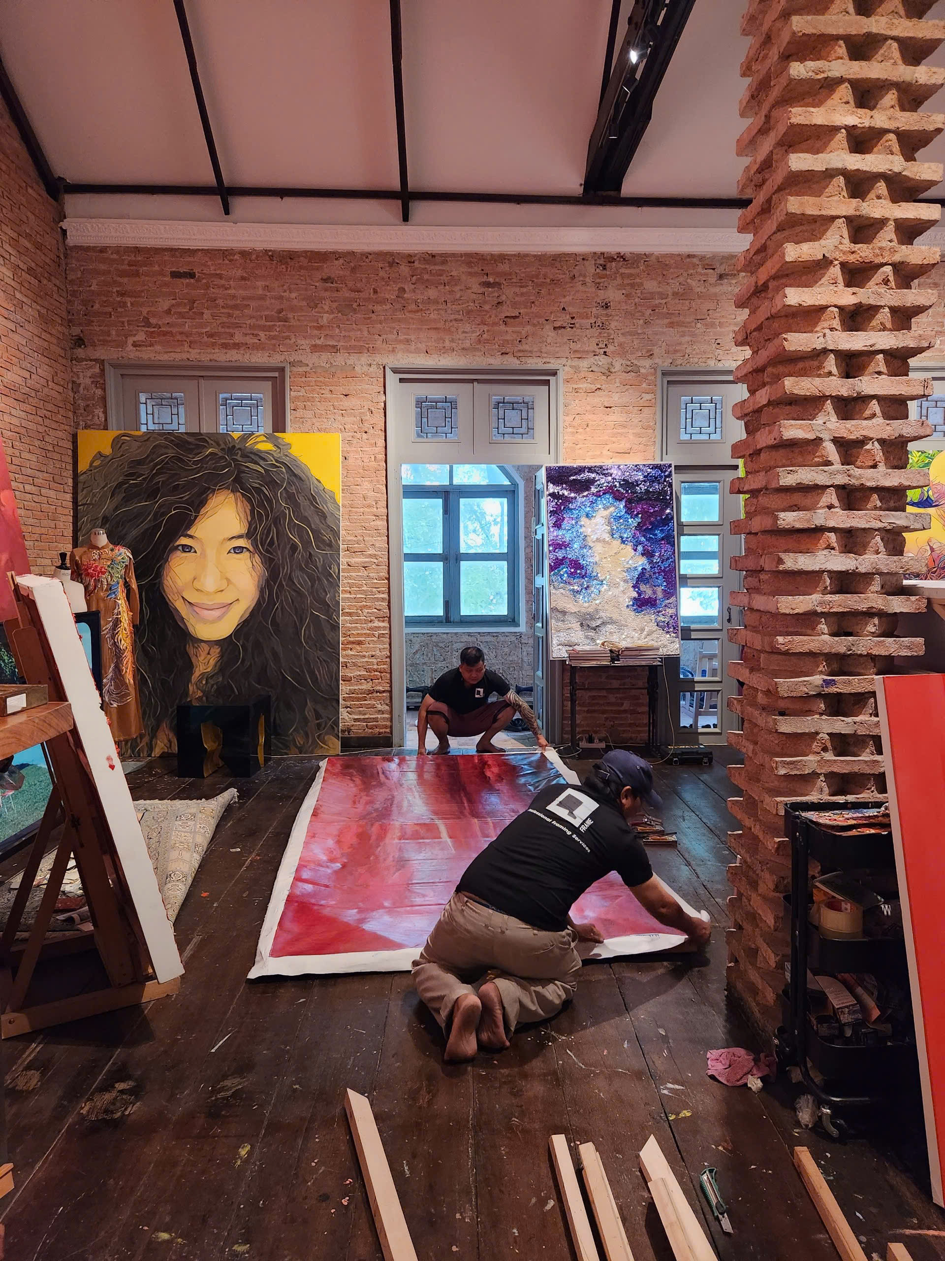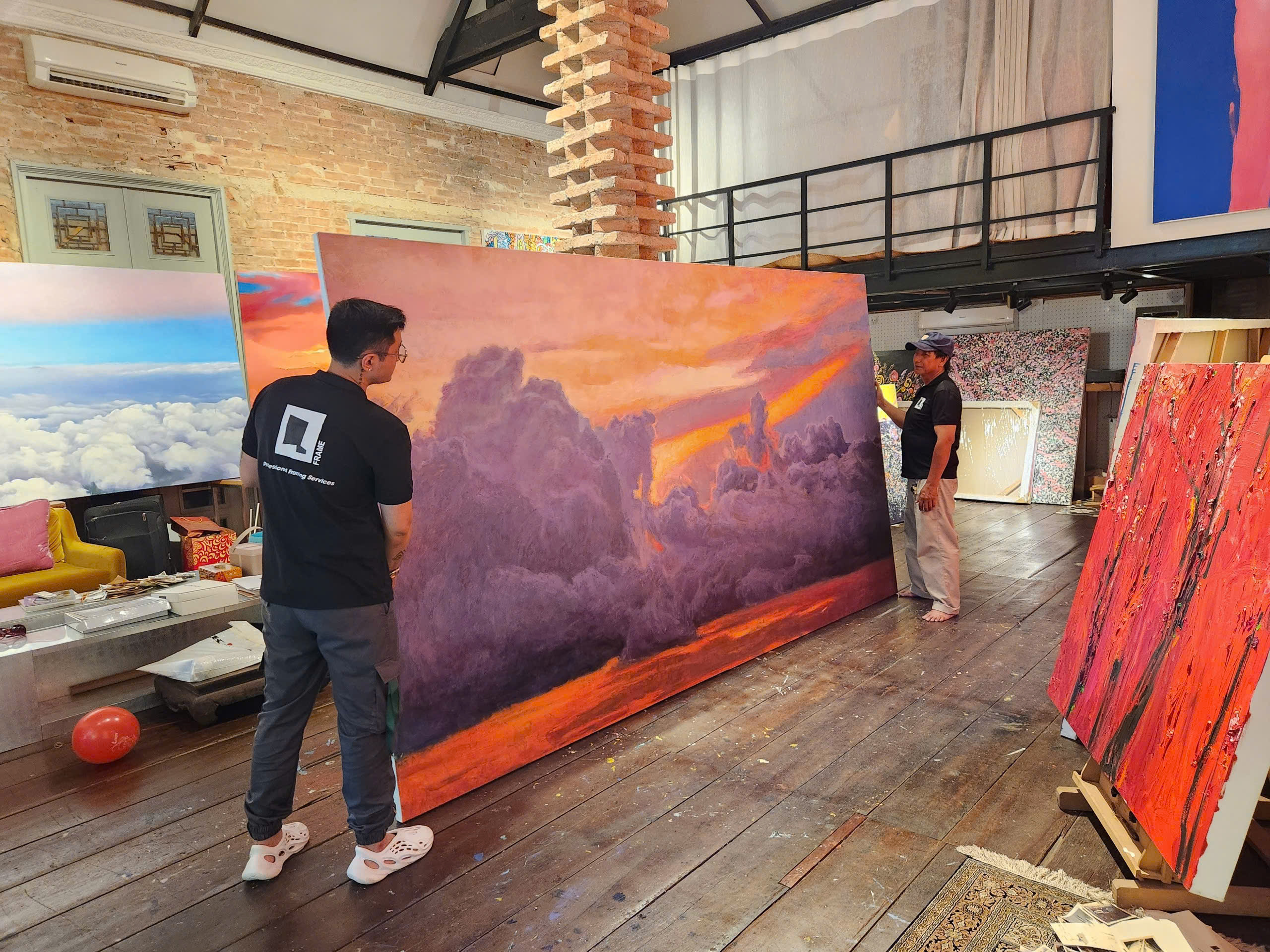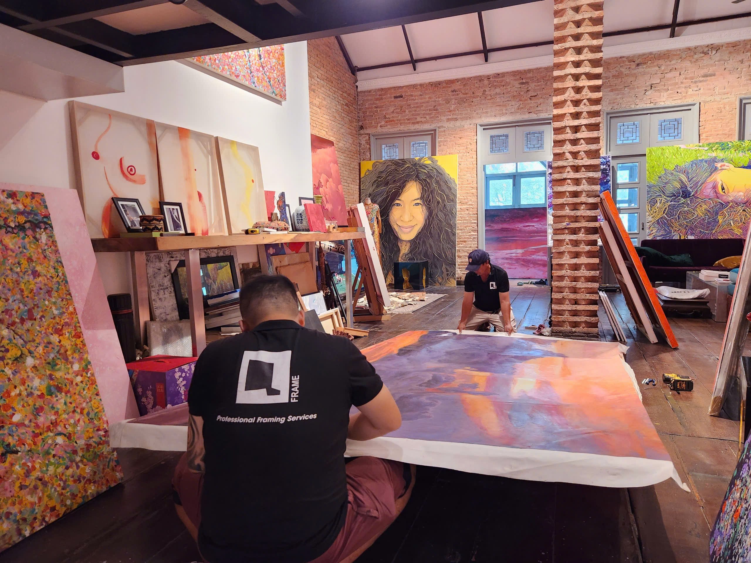 Với dự án này, QFrame cung cấp dịch vụ căng tranh sơn dầu khổ siêu lớn với kích thước 3m x 5m. Đây là yêu cầu đòi hỏi kỹ thuật xử lý chính xác, đảm bảo độ bền và tính thẩm mỹ cho tác phẩm ở quy mô không gian rộng. Việc triển khai dự án góp phần cho thấy cách các tác phẩm nghệ thuật quy mô lớn có thể được bảo quản và trưng bày đúng chuẩn, giữ trọn giá trị thị giác và kỹ thuật của người nghệ sĩ.