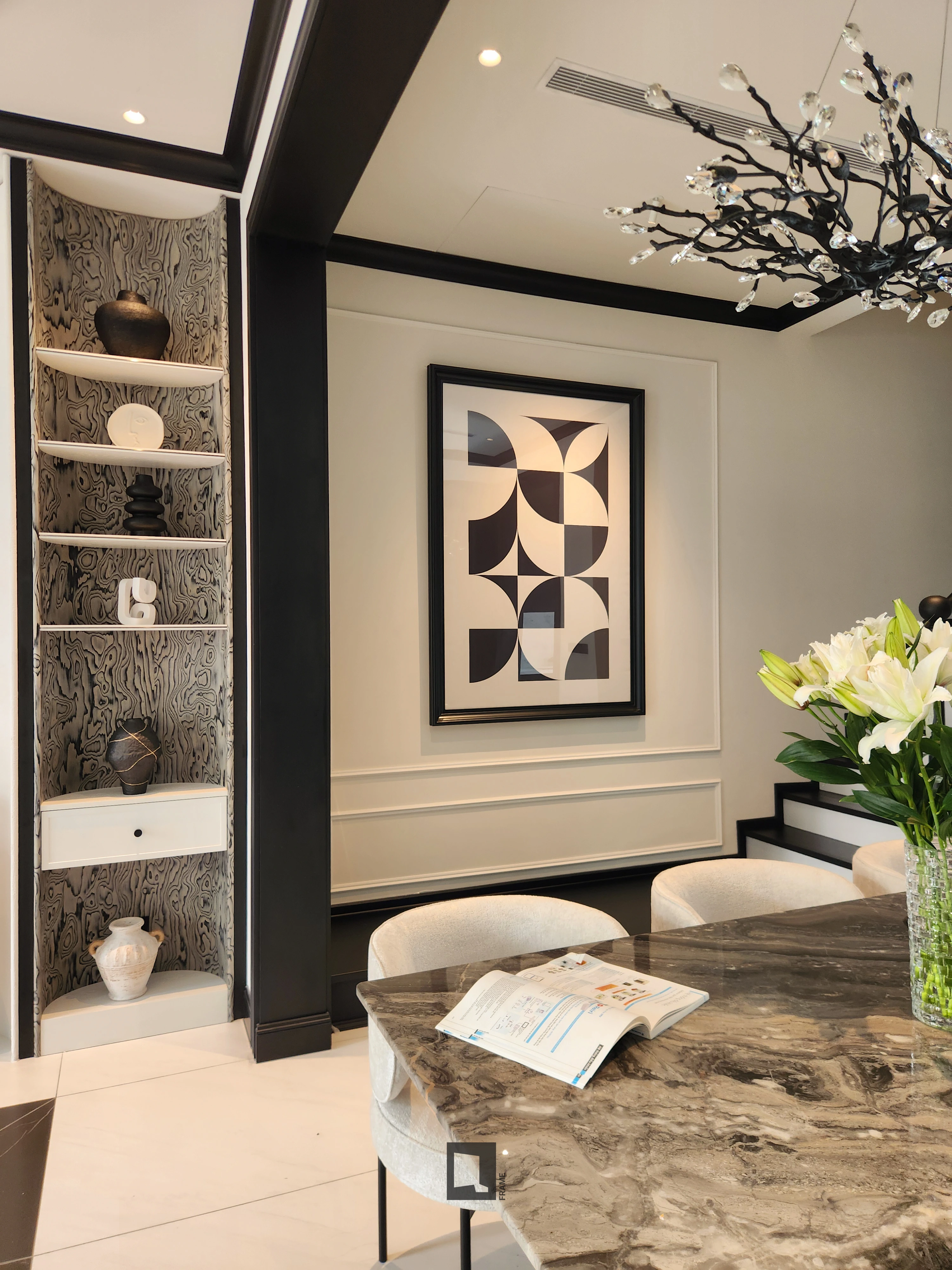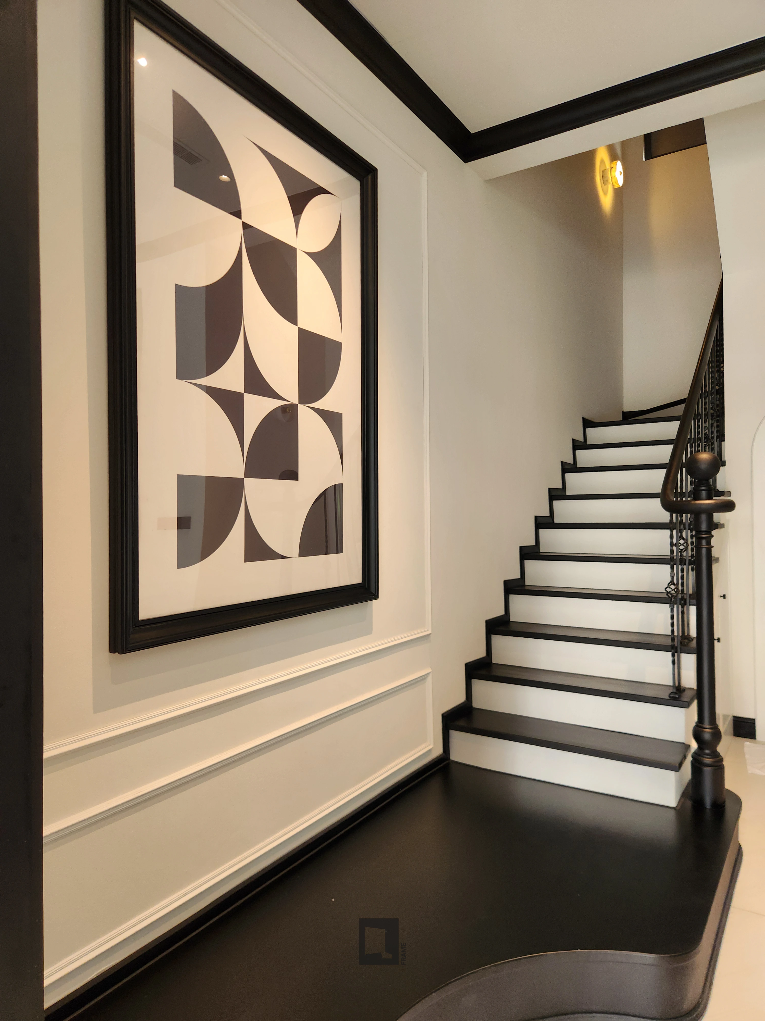Tại Verosa Park Khang Điền, QFrame tham gia dự án với vai trò cung cấp giải pháp trang trí tranh treo tường cho một căn villa, bao gồm khung tranh, in ấn tác phẩm và thi công treo lắp. Việc triển khai được thực hiện gọn gàng, đúng tiến độ và đồng bộ với không gian nội thất hiện hữu. Cách hạng mục tranh treo tường được triển khai gọn gàng, đồng bộ với không gian phản ánh rõ tiêu chuẩn hoàn thiện mà dự án hướng đến, trong đó thẩm mỹ, kỹ thuật và sự nhất quán được đặt song song.